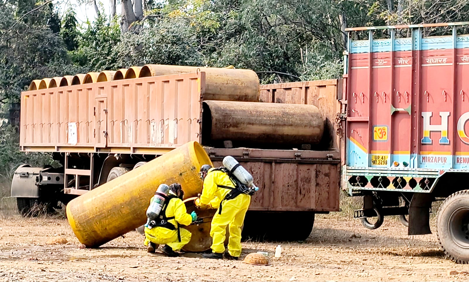 ग्रासिम केमिकल डिवीजन रेणुकूट में क्लोरीन गैस रिसाव पर मॉक ड्रिल